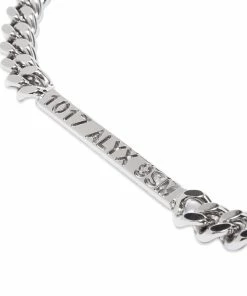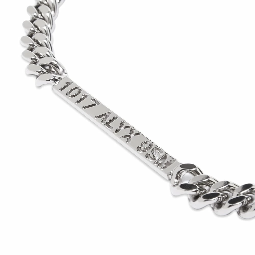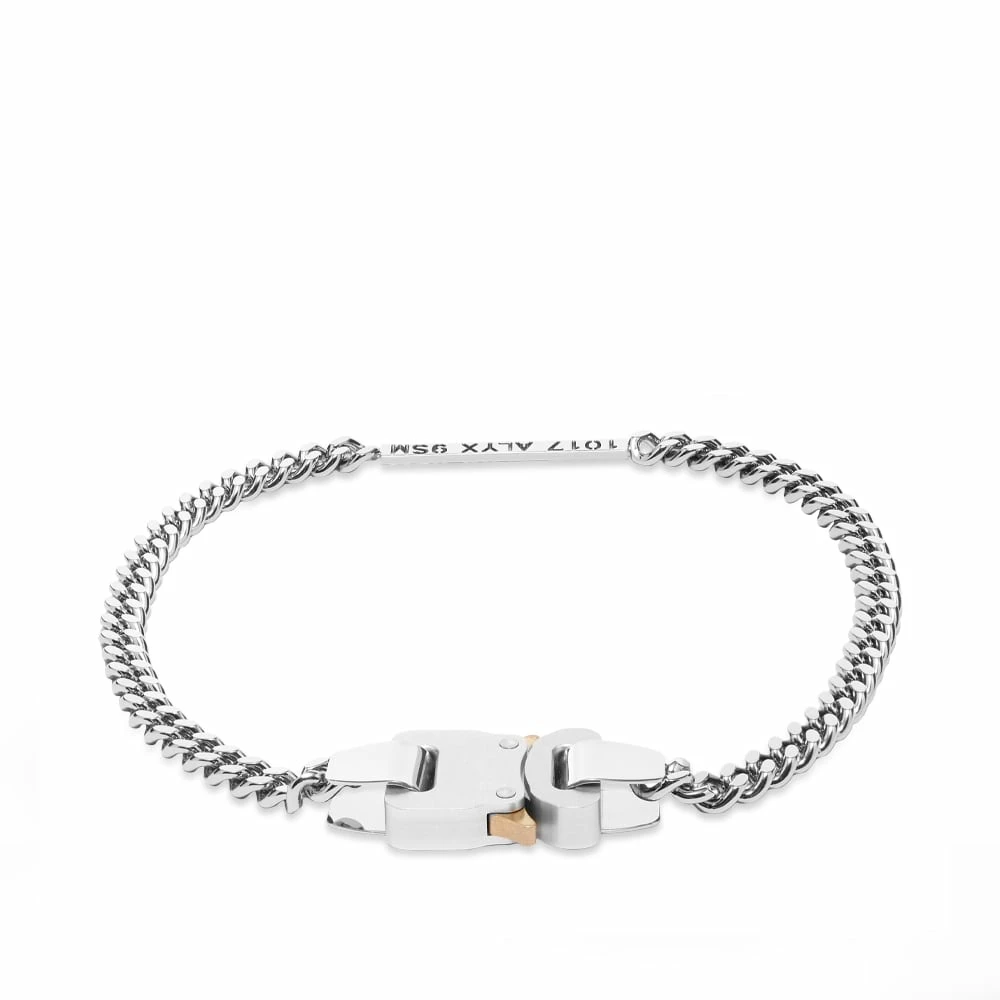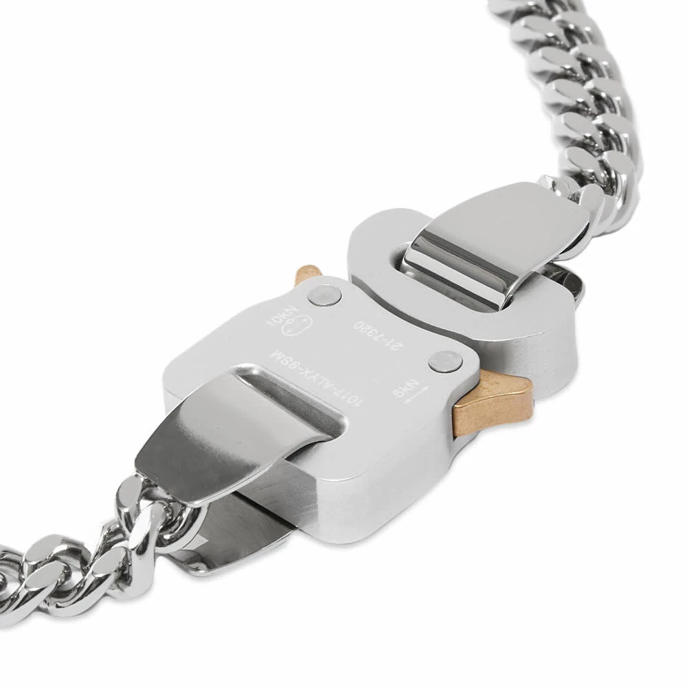 For 1017 ALYX 9SM, industrial-inspired styling is a big focus, and this necklace showcases that approach. It’s made using silver-toned brass and features a curb-linked chain, which is detailed with the label’s iconic rollercoaster buckle at its closure.