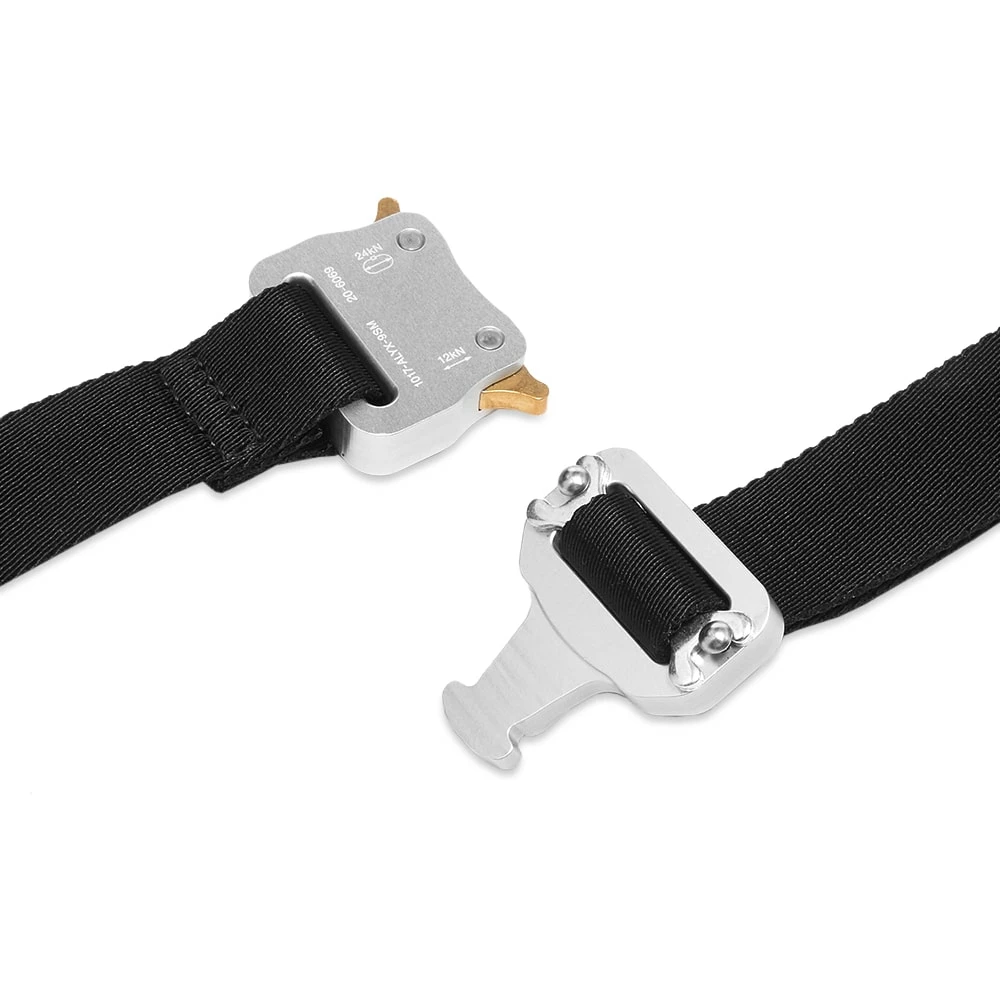The rollercoaster buckle is synonymous with 1017 ALYX 9SM; it perfectly showcases the label’s technical and industrial design approach. And it’s present with this belt, too, with a silver-toned version at its closure. It features nylon webbing, as well, to really drive home that utilitarian look.