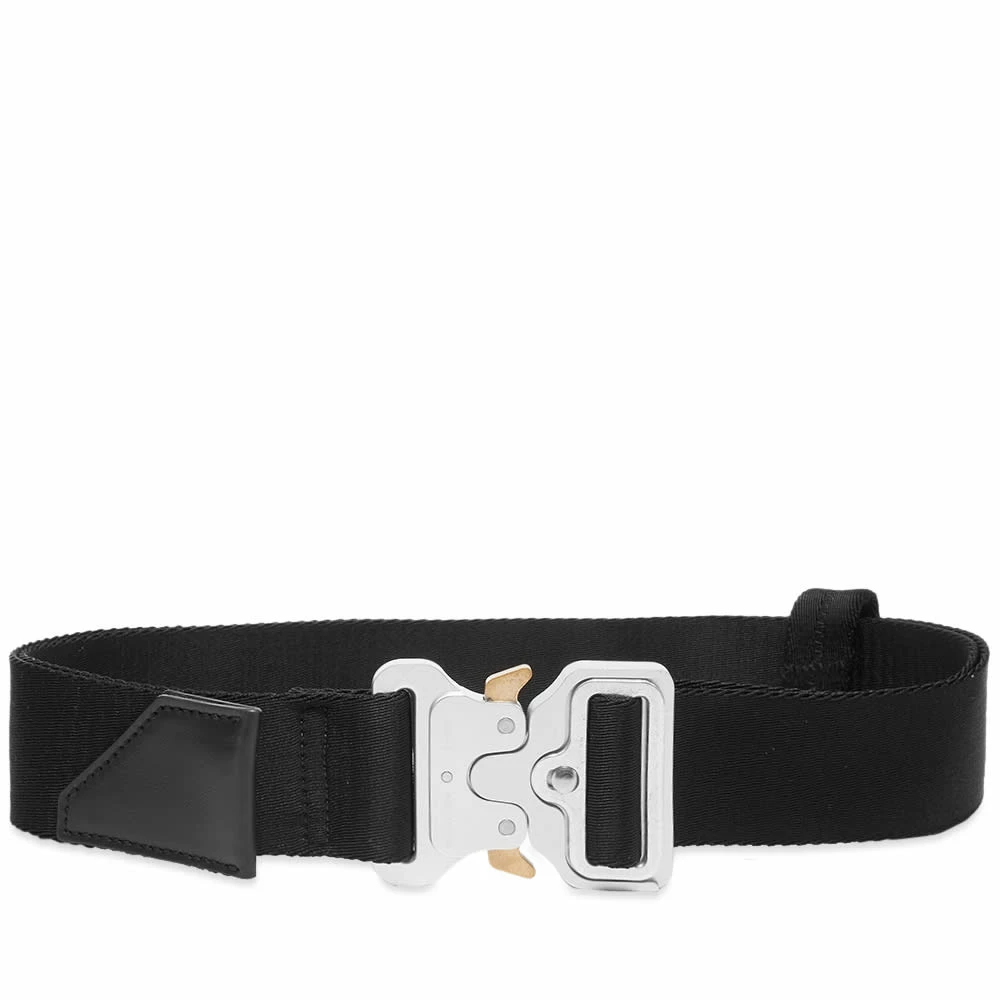 Matthew Williams’ 1017 ALYX 9SM has long taken a technical approach to design, and the label’s rollercoaster buckle is the perfect example. It gets a feature with this black belt, too, which is made from a taped nylon material — which has branding engineered into it — then detailed with that famous hardware at its closure in silver tone.