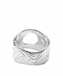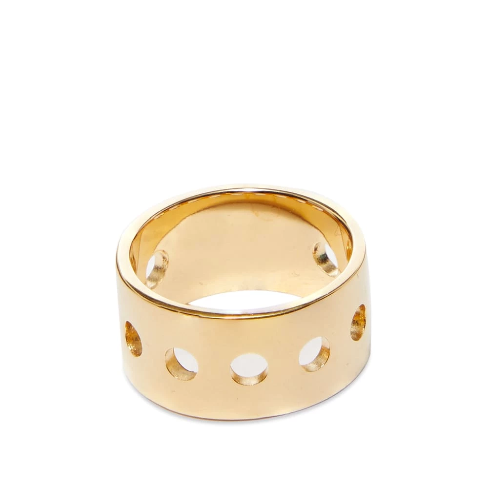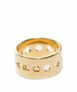 A.P.C’s Concert ring is guaranteed to add a touch of streetwear flare to your everyday ring rotation. The chunky gold-toned band is finely traced with perforated detailing and is engraved with the brand’s logo on the outside.