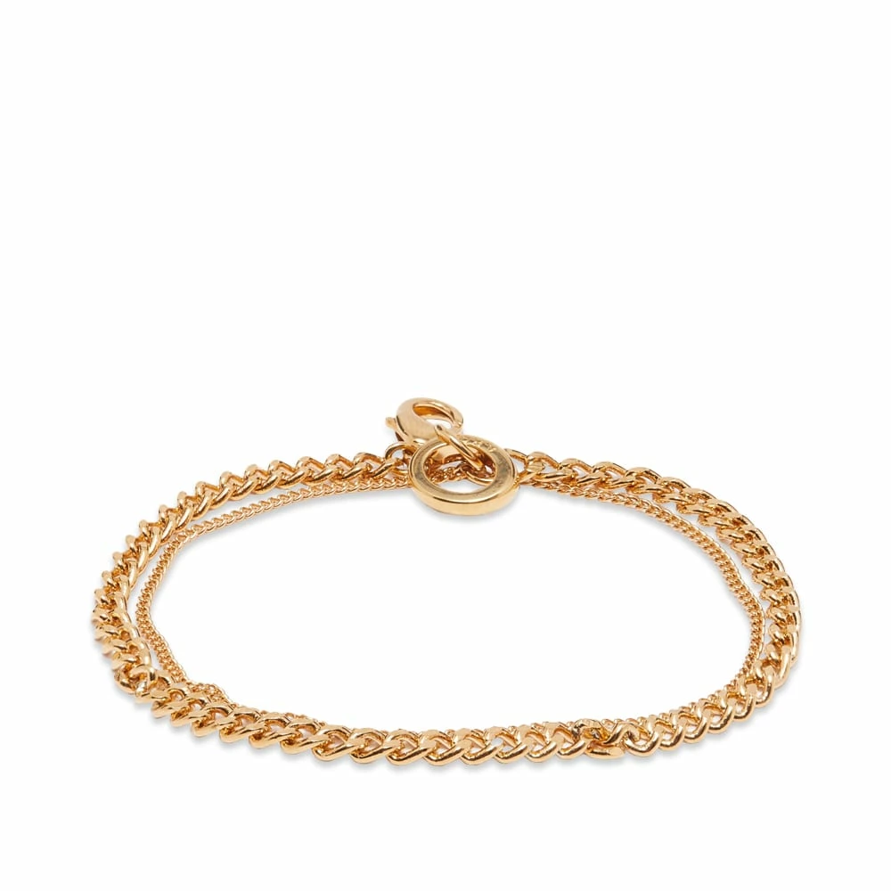 This minimal gold-tone bracelet from A.P.C. perfectly demonstrates the Parisian brand’s no-fuss, refined approach to design. It’s constructed from two sleek curb chains of different gauges, both of which are constructed from premium brass and come complete with an logo engraved circular pendant.