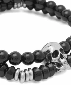 After skull and crossbones motifs dominated Alexander McQueen’s runway in 1992, they fast became a staple for the London label – a legacy which creative director Sarah Burton has continued to utilise since taking on the role in 2010. This season, the signature skull characterises this beaded, double wrap bracelet – infusing gothic undertones into any look, at any time.