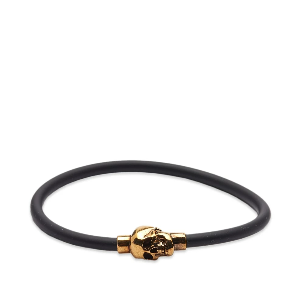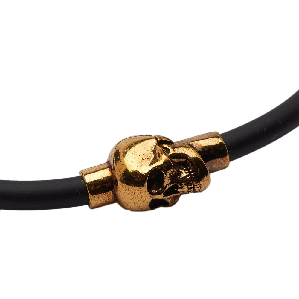 Alexander McQueen’s iconic skull motif has been given a grungy antique gold-toned upgrade with this luxe black bracelet. Made in Italy, it’s crafted from brass with a comfy rubber cord and is secured with a magnetic clasp for easy wear.