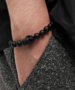 It’s no secret that luxury fashion house Alexander McQueen has a penchant for skeletons – and this black bracelet is a prime example. Italian-crafted, its matte-black rock ‘n’ roll bead construction stretches for comfortable wearing and promises to bring a touch of gothic glamour to your daily look.