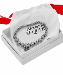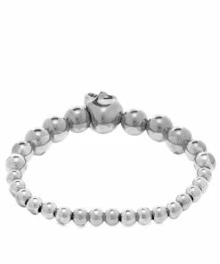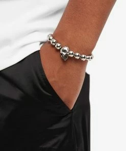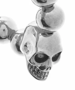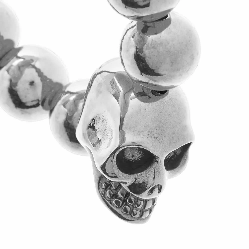 Add a burnished silver touch to your everyday wardrobe with this beaded bracelet from British label Alexander McQueen. It’s crafted with an elastic core for comfortable wear and punctuated with a signature Gothic skull in true house style.
