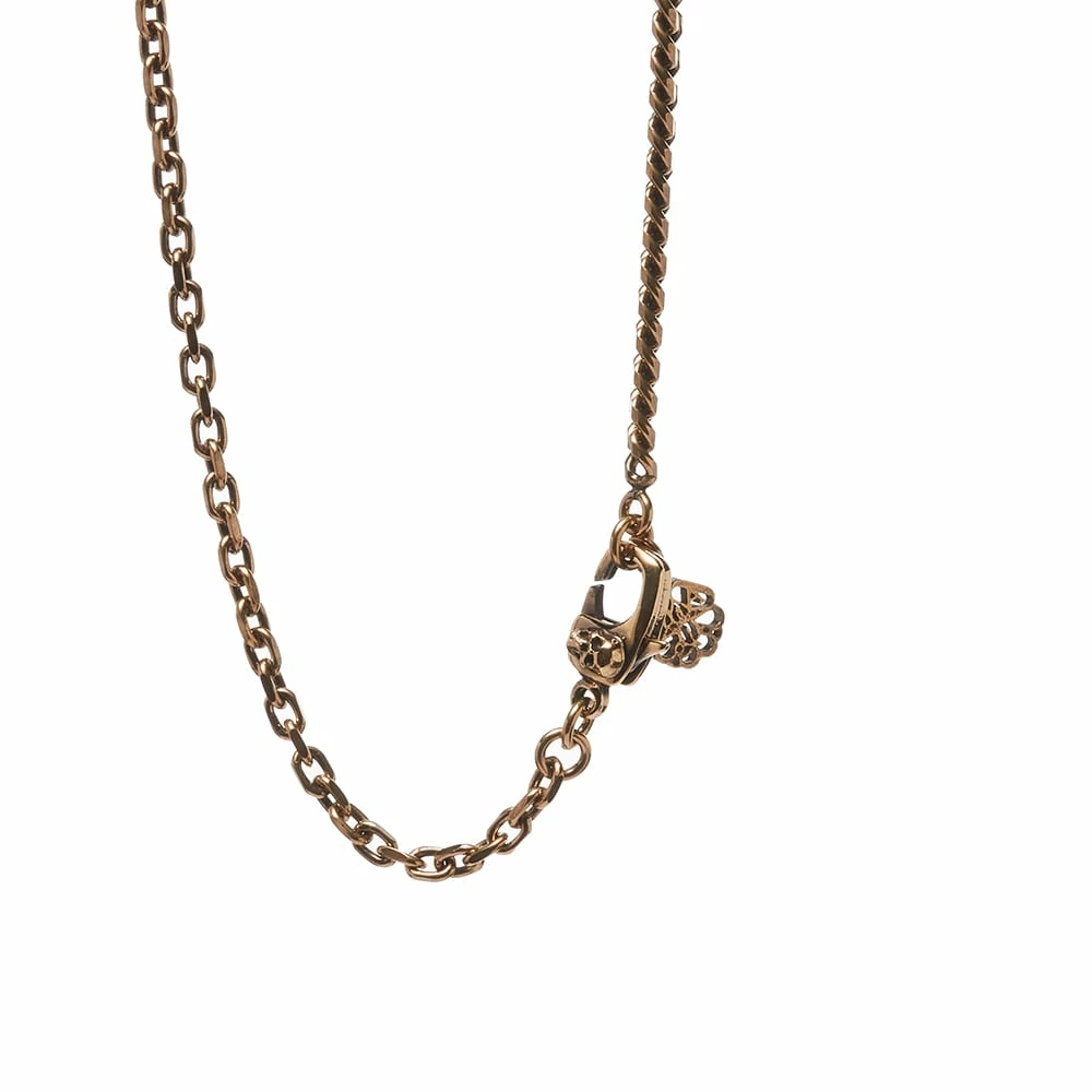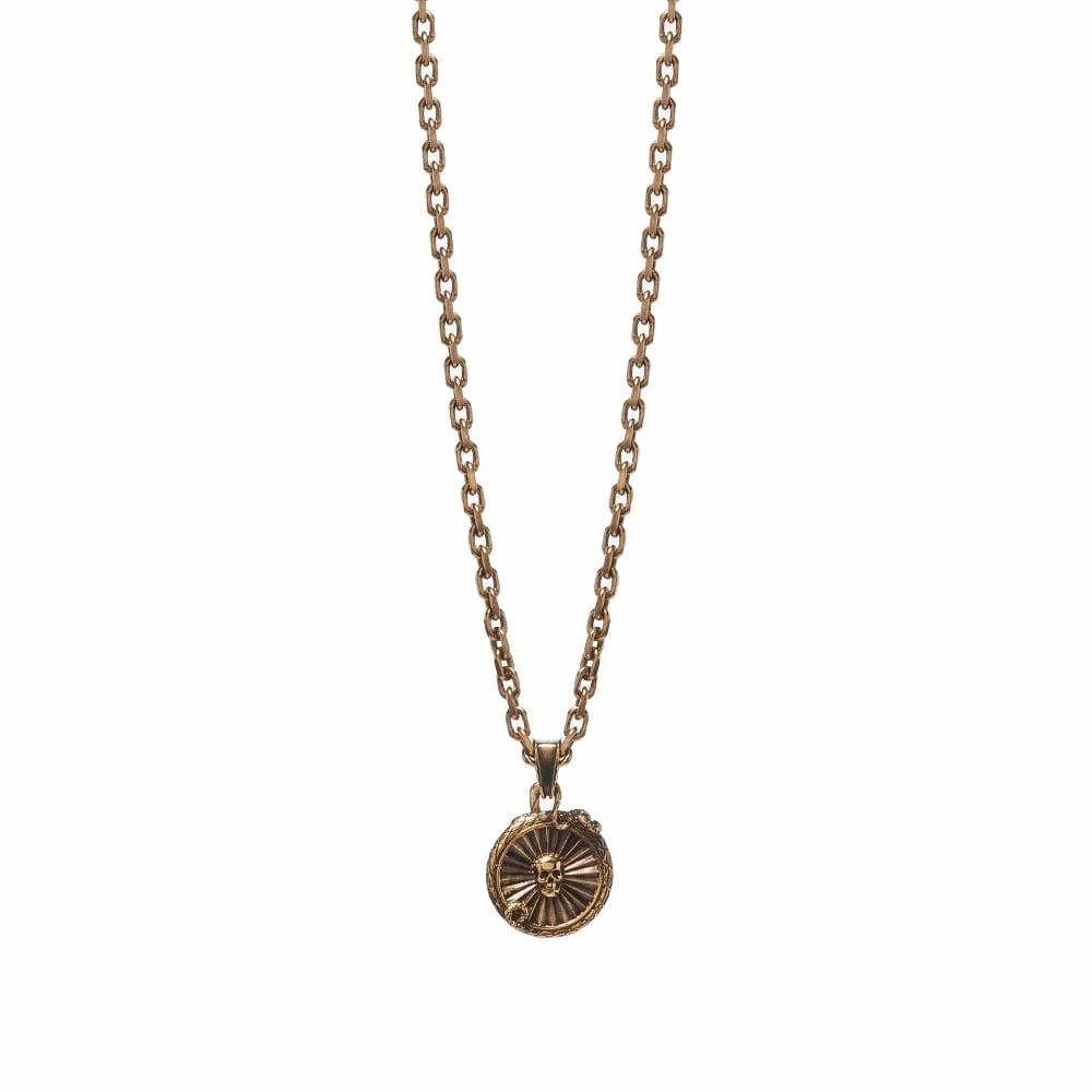 Alexander McQueen is renowned for its grungy skull aesthetic – and this coin necklace certainly follows suit. Crafted in Italy from brass – with an antique silver finish – the coin pendant features a metal snake on one side and a skull on the other, allowing you to switch up your look.