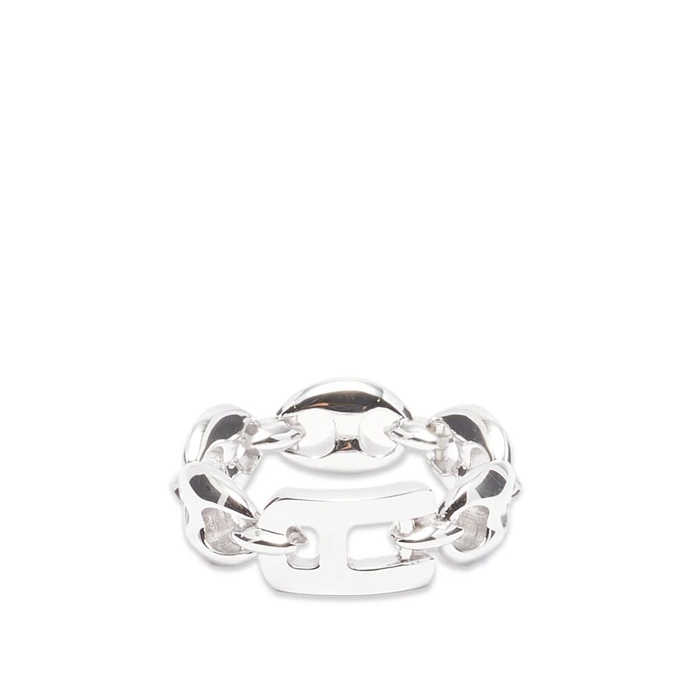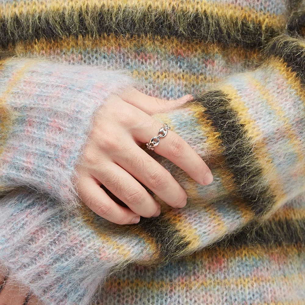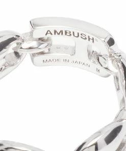Experimental jewellery brand AMBUSH delivers an innovative, art-inspired piece once again with this A Link ring. It’s Japanese crafted from premium silver-tone brass and showcases a rounded chain-link design, finished with signature engraved branding.