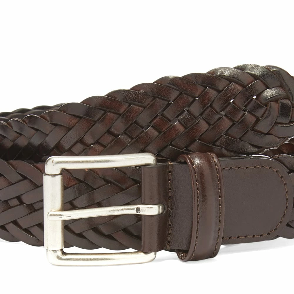 Complete any outfit, formal or otherwise, with this dark brown belt from Anderson’s. It’s woven in Italy from premium leather and finished with a timeless silver-toned buckle.
