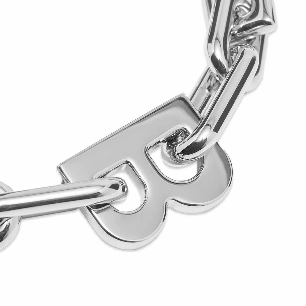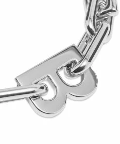 Spanish fashion house, Balenciaga is world renowned for uncompromising quality and attention to detail. For the AW22 collection the label’s maximalist approach is maintained with the chain bracelet. Defined by its chunky chain links, it’s made from high-shine silver brass and elevated with a dramatic “B” shapes loop.