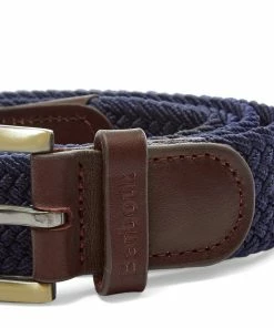 Adding to its collection of functional fashion, British brand Barbour issues this durable, navy blue belt. Woven from a blend of fibres, it features supple leather detailing and is secured by way of a brass buckle.