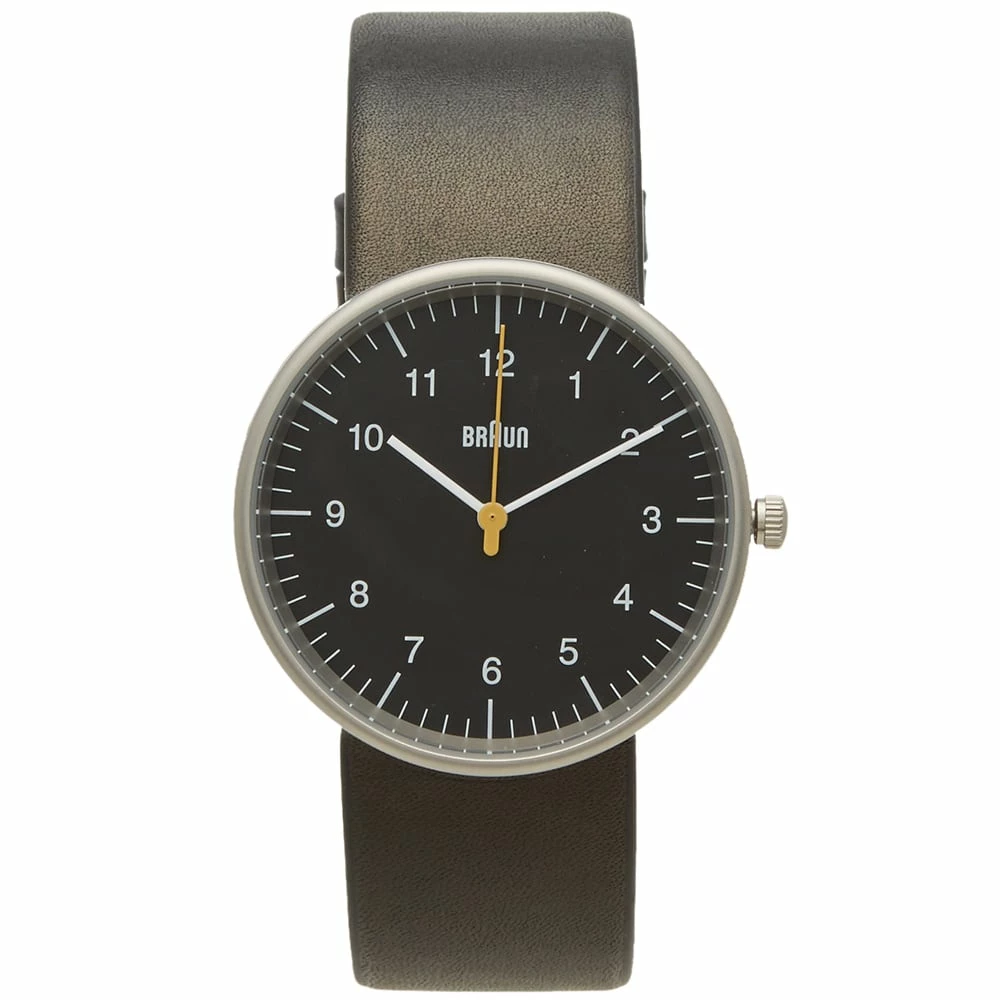 Braun has long created pieces using functional details and minimal designs, as is evidenced with this BN0021 watch. It’s coloured predominantly in black, save for the silver stainless steel case and white markers, and comes with a leather strap, too. A Quartz 3 movement is housed behind scratch resistant glass that’s also water resistant up to 50 metres.