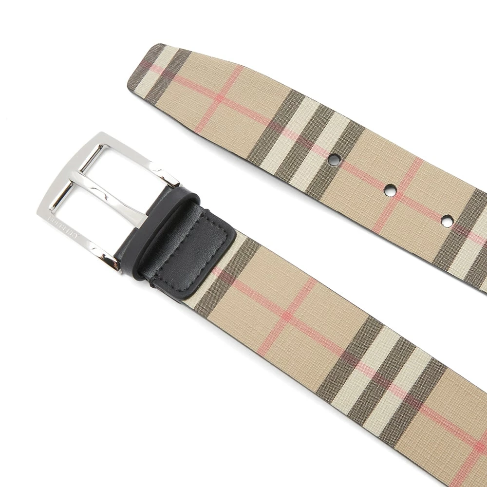 Heritage brand Burberry is known for innovation when it comes to designing apparel and accessories. The Gray belt is made to the archive beige check pattern which has been trademarked by the brand since the 1920s.