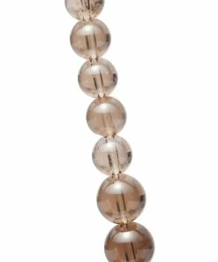 Completed Works’ sculptural jewellery is always a conversation starter. This necklace is a new addition, from the river-inspired Tidelands collection. A string of quartz beads vary in size, mimicking the flow of water, back and forth in the opposite direction. A 14k gold plated hook closes things in and an organic form is finished with engraved branding.