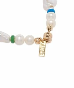 This beachy-inspired Silvi bracelet from éliou is handcrafted in Miami from freshwater pearls and glass beads and features a bold array of colours for an added touch. To finish, the bracelet is fitted with a gold-filled closure for easy wear.