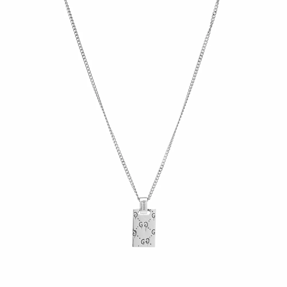High fashion is given a grungy twist with this Gucci ghost necklace. It’s made from aged sterling silver and features a square engraved pendant – detailed with the gothic ‘G’ that’s designed in partnership with Brooklyn artist, Trouble Andrew. To finish, it comes with a fine rope chain.