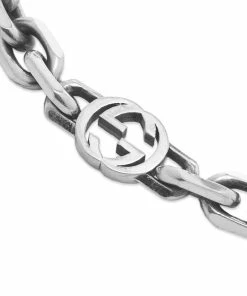 Vintage finishes and archival motifs go hand in hand, and this Gucci bracelet has both. It’s crafted in Italy from antiquated sterling silver, using a sequence of carved cable links and charms shaped into the iconic interlocking G logo.