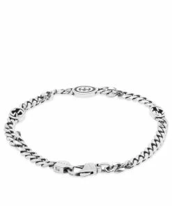 The interlocking G is an emblematic house code of Gucci that pays homage to its founder, Guccio Gucci. Expertly made in Italy, the recognisable symbol decorates this sterling silver chain bracelet, while a larger enamelled version of the monogram completes the luxury look.
