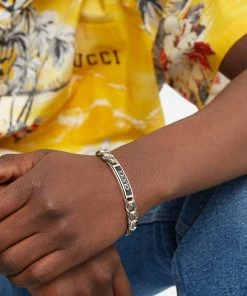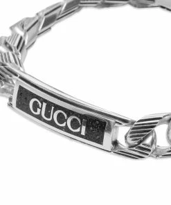 Gucci adds a touch of edge to this bracelet, crafting it in Italy and fitting it with a chunky sterling silver chain for a contemporary feel. Featuring a box clasp closure for easy everyday wear, the bracelet is complete with a signature branded pendant front and centre.