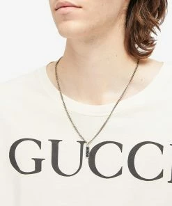 Made in Italy, this necklace from Gucci is detailed with a black enamel logo tag for a rebellious touch. Attached to a sterling silver chain, it’s complete with a secure lobster clasp fastening at the back, too.