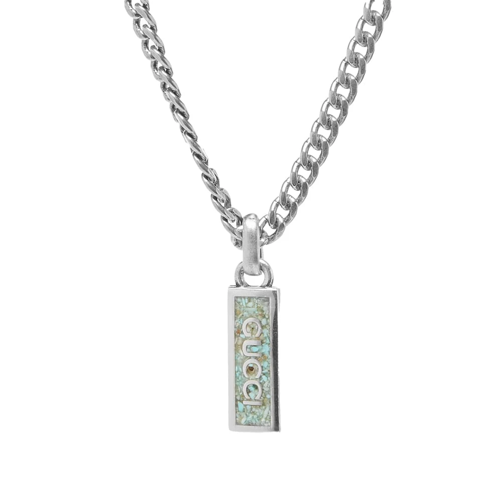 Made in Italy, this necklace from Gucci is a unique addition to your jewellery collection. Crafted from sterling silver in a gourmette-style chain, it’s detailed with a blue and grey enamel pendant, complete with a silver logo for a touch of refined brand appeal.