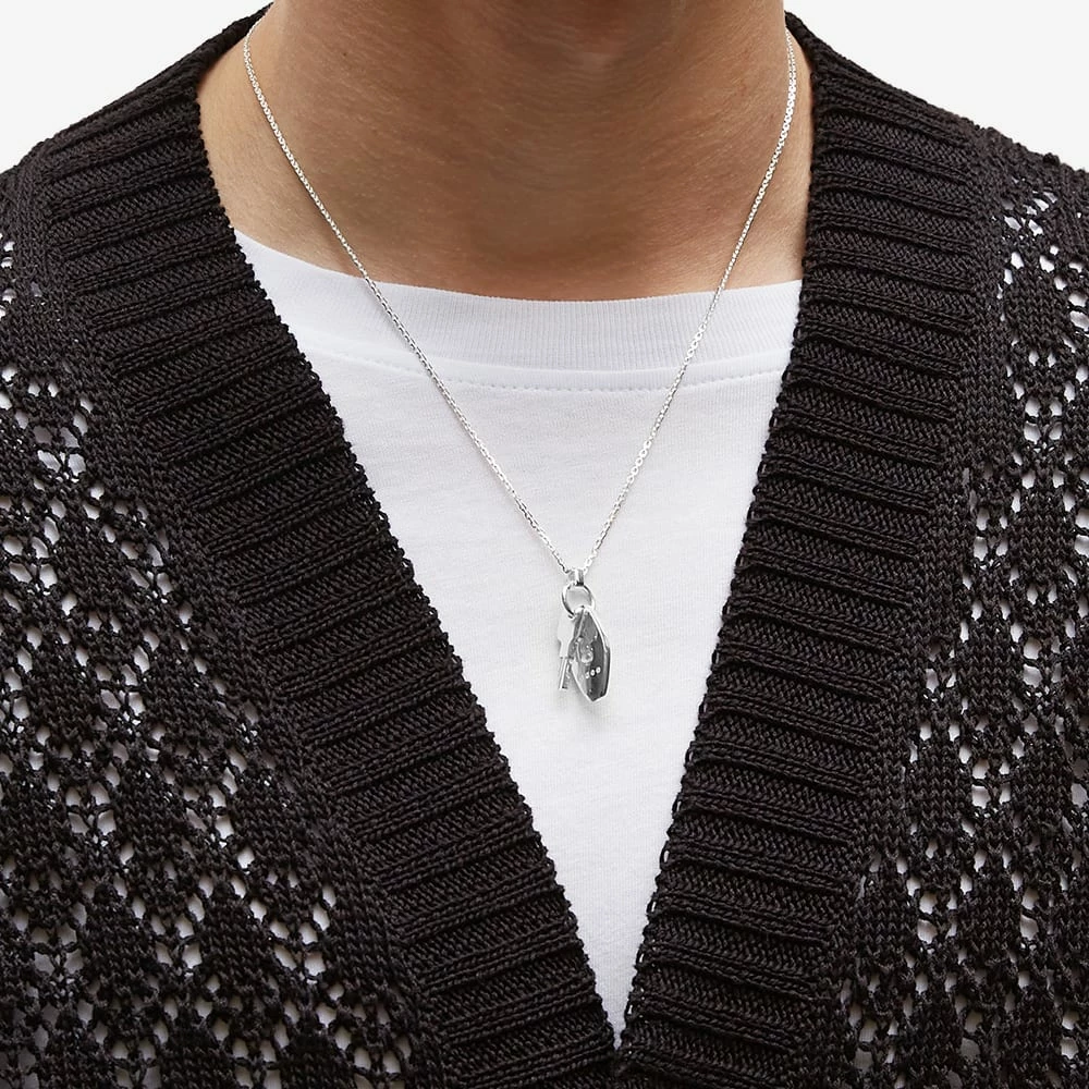 Looking to elevate your jewellery collection? Hatton Labs has the key. This Towers Key Pendant is crafted from sterling silver and showcases a hotel keyring-shaped pendant engraved with the brand’s logo and lucky number eight. The set hangs from a delicate chain that closes around the neck with a lobster clasp. Perfect for easy, everyday wear.