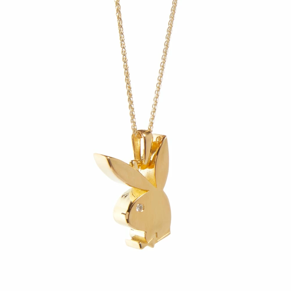 Add a playful touch to your accessory collection with this Playboy Bunny necklace from London-based jewellers Hatton Labs. Crafted from sterling silver, plated with gold, the iconic pendant hangs from a slim chain and is delicately detailed with glimmering white stones, too.