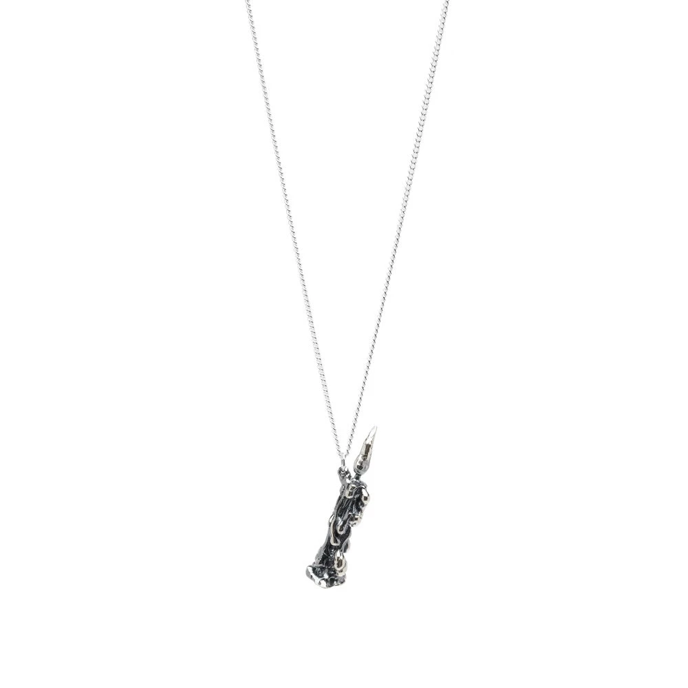 Heresy tells us tales of British folklore and mythology by the candlelight of this chain necklace – detailed with an intricate candlestick charm. Made from oxidised silver for a historical look, the UK label effortlessly adds a vintage feel to any ‘fit.