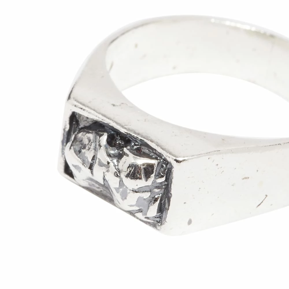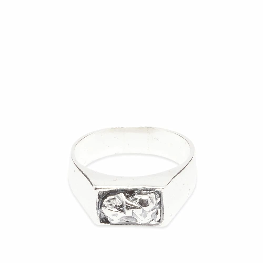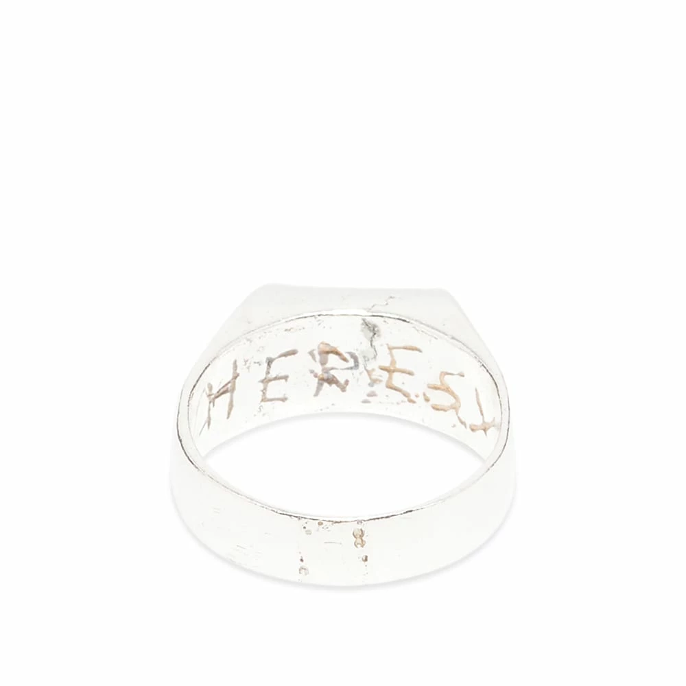 For its AW22 collection, U.K. label Heresy created a fictional pastoral land, Bogton Hamlet, to act as an amalgamation of local folklore and mythology. The themes are reflected in this crag ring, cut from sterling silver that’s oxidised for a vintage, historical feel – while the unique Heresy logo is engraved delicately inside.