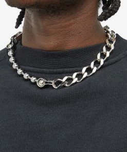 Add a bold statement to your street-ready look with this silver necklace from Heron Preston. Made from silver-toned brass, it shows off a multi-chain design and is complete with a orange clasp, that’s engraved with signature branding.