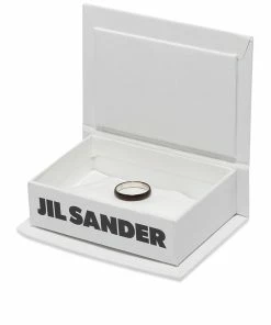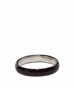 Jil Sander reimagines its classic ring in a winter-ready brown shade. Made from sterling silver, it arrives in the usual chunky, rounded band shape and is updated with brown-toned enamel coating on the outside for a refined, modern look. It’s finished, as usual, with the brand’s logo engraved on the inside.