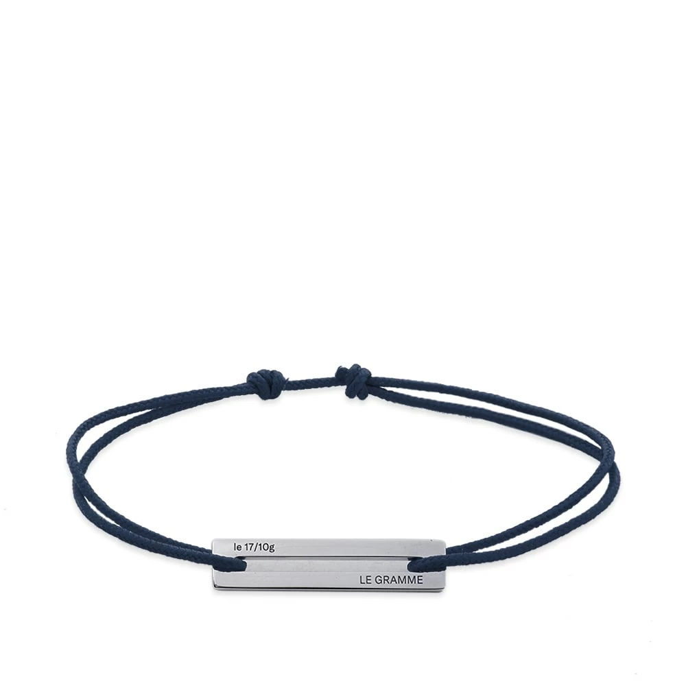 Hand polished by Le Gramme’s esteemed jewellery artisans, the 17/10 cord bracelet is crafted using a mix of polyester cord and 925 sterling silver. Made in France, this cool marine blue accessory is completed with engraved branding that indicates the weight of the precious metal from which it is made.