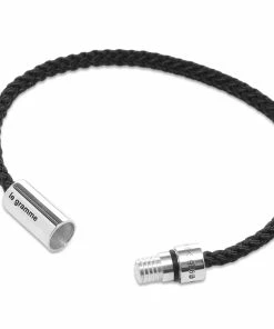A brand bestseller, Le Gramme’s cable bracelet is reimagined in waxed cotton cord this season. Retaining its cylindrical clasp and formulaic engraving, this black and 925 sterling silver rendition exudes an air of luxury industrialism — a style that the label has become synonymous with.