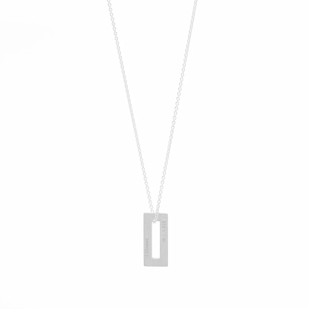 Add some cool French minimalism to your accessories with this LE GRAMME necklace. It’s made from sterling silver and styled with a rectangular pendant for a low-key, suave aesthetic.