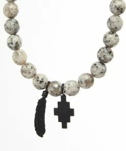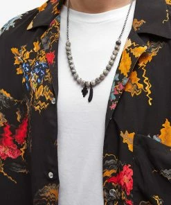 Add a distinctive, grungy touch to your look with this silver-toned necklace from Milan-based fashion label Marcelo Burlon. Made in Italy, it’s styled with statement speckled-effect beads and features two black-tone pendants – the brand’s iconic cross and a quill-like feather. It’s secured with a classic lobster clasp to finish.