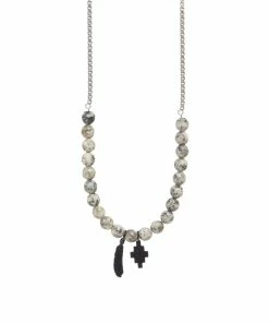 Add a distinctive, grungy touch to your look with this silver-toned necklace from Milan-based fashion label Marcelo Burlon. Made in Italy, it’s styled with statement speckled-effect beads and features two black-tone pendants – the brand’s iconic cross and a quill-like feather. It’s secured with a classic lobster clasp to finish.