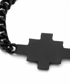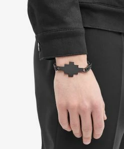 Add some grunge vibes to your look courtesy of this bracelet from Marcelo Burlon. Made in Italy from black-tone metal, it shows off a chunky, curb-link chain and is complete with the brand’s iconic cross pendant on the front.