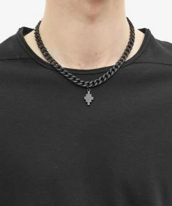 Made in Italy from black-tone metal, this chunky, curb-link necklace from Marcelo Burlon promises to add some grunge vibes to your look. The bold piece is complete with the brand’s iconic cross pendant for a statement finish.