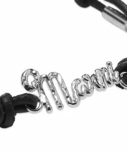 Marni puts its signature stamp on this simplistic bracelet. Styled in black, it features a luxurious leather band, alongside the brand’s logo written in silver-tone hardware at the front.
