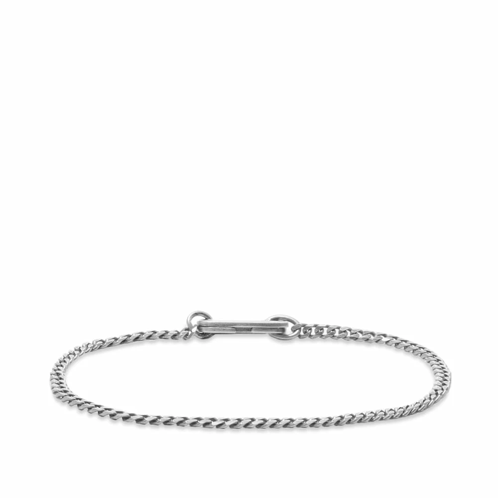Luxury jewellery brand Miansai keeps things simple with the Annex Cuban Chain bracelet. It’s crafted using thin sterling silver Cuban links and secured with a hardware-inspired scissor clasp.