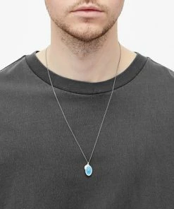 Drawing inspiration from an antique French pendant, the Miansai Fortuna necklace serves as a reminder of individuality and prosperity. Styled with a sterling silver chain, it features a blue enamel pendant that is detailed with the Goddess of Fortune and Luck.