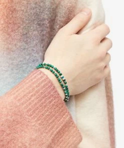 Draw out negative energies with this malachite bracelet from Mikia. Continuing to be inspired by her travels, Aki Mitsubayashi’s label crafts this delicate accessory with a double-wrap structure – studded with luxuriously deep green malachite beads and silver-tone punctuations.