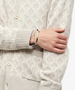 Inspired by travel souvenirs and quirky market stalls, this bracelet from Mikia is perfect for finishing off your ‘fits. Made in Japan, it’s strung with a mix of white jasper, black jet and bright Arizona turquoise, then finished with a beachy shell button clasp and an engraved brand medallion for a rustic touch.