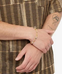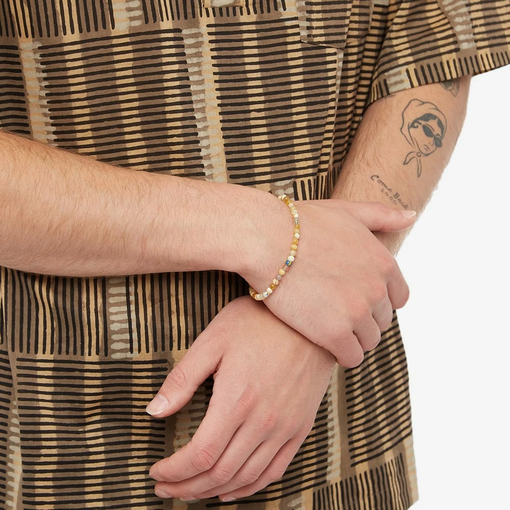 Mikia is renowned for its travel inspired pieces and this bracelet is no different. It’s crafted from smooth beads of yellow stone and glass, spaced with sterling silver discs that match the toggle clasp that give it that sentimental trinket look.