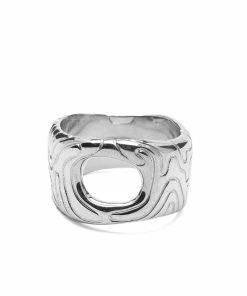 The globe ring is made from a solid recycled 925 silver as the brand continues to use responsible materials. Each new creation of this ring is made to be completely unique as the next. The ring is made with soft curved lines which are reminiscent of topographic lines on a map.