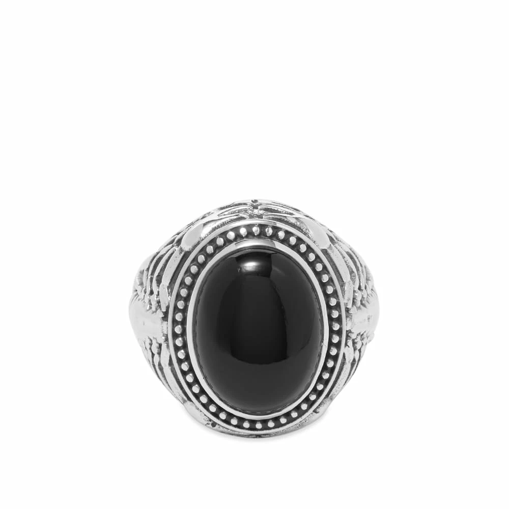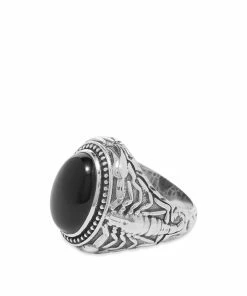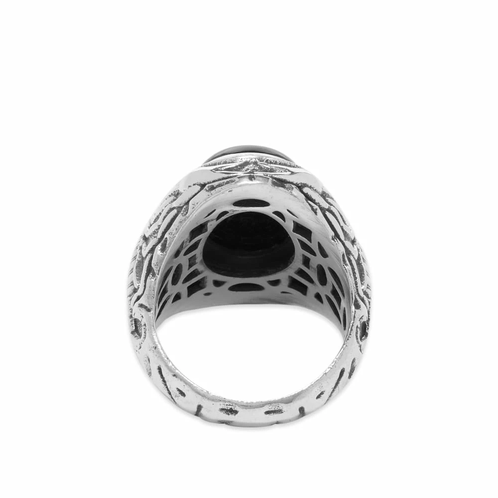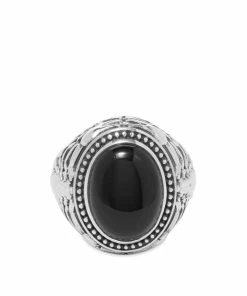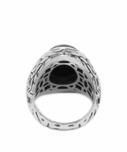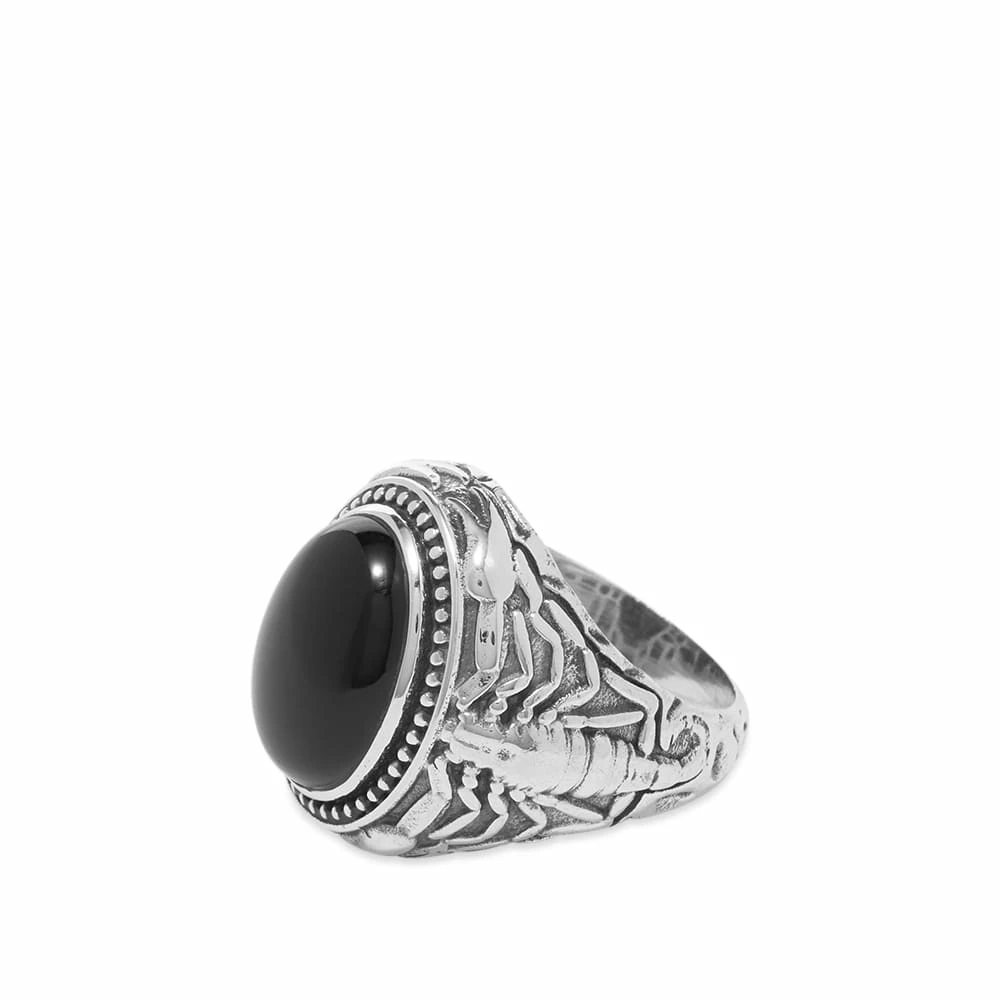 Add a rebellious touch to your look with this ring from OTHER. Crafted from 925 sterling silver, it shows off a scorpion detail across the band and is complete with a bold black stone on the front.