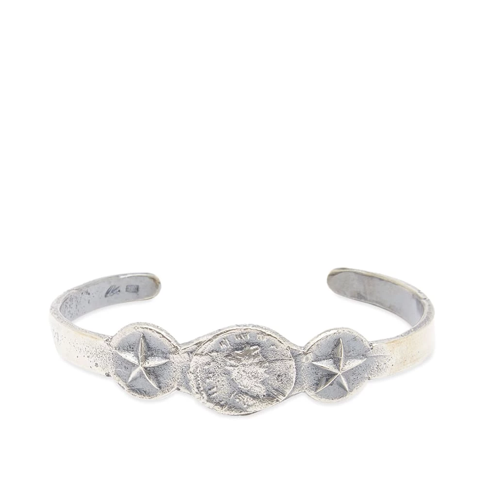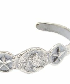 Our Legacy is a cult Sweden-founded brand, renowned for its meticulous attention to detail and craftsmanship. Promising to elevate your seasonal ‘fit, this open-cuff, sterling silver bangle – that’s handmade in Sweden – features melted-effect coin and star detailing and has a luxe, antique finish.