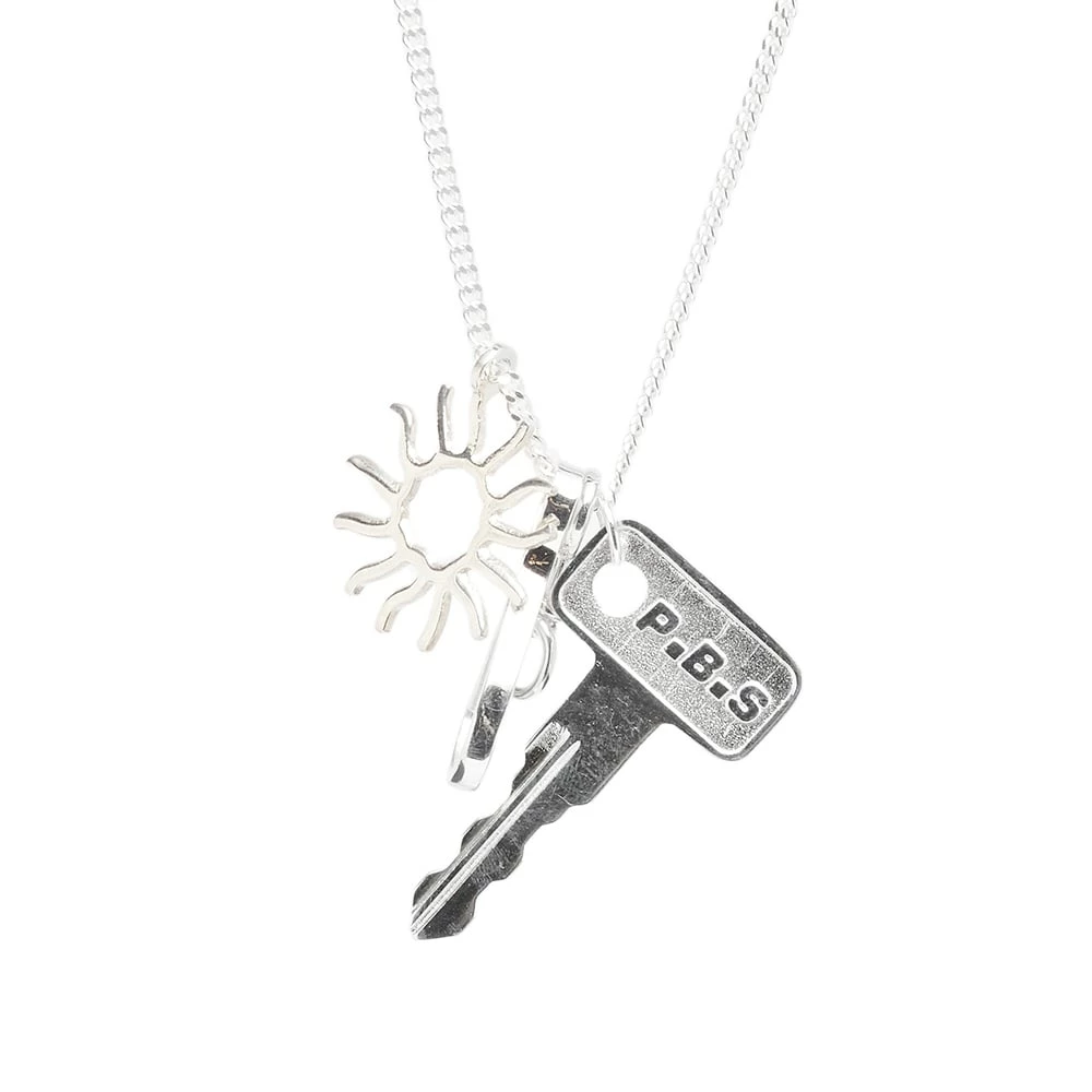 Established in 2006, Canadian brand Pearls Before Swine works with precious metals and pearls to challenge the ways of the fine jewellery industry. The DU pendant necklace features an array of pendants made from a 925 silver. Featuring a key, a sun and a clip the necklace represents the beauty in mundane things.