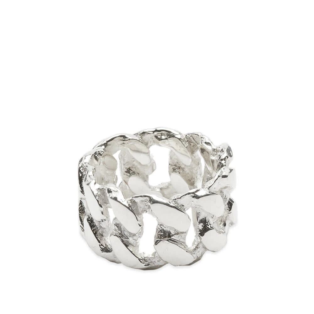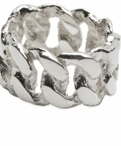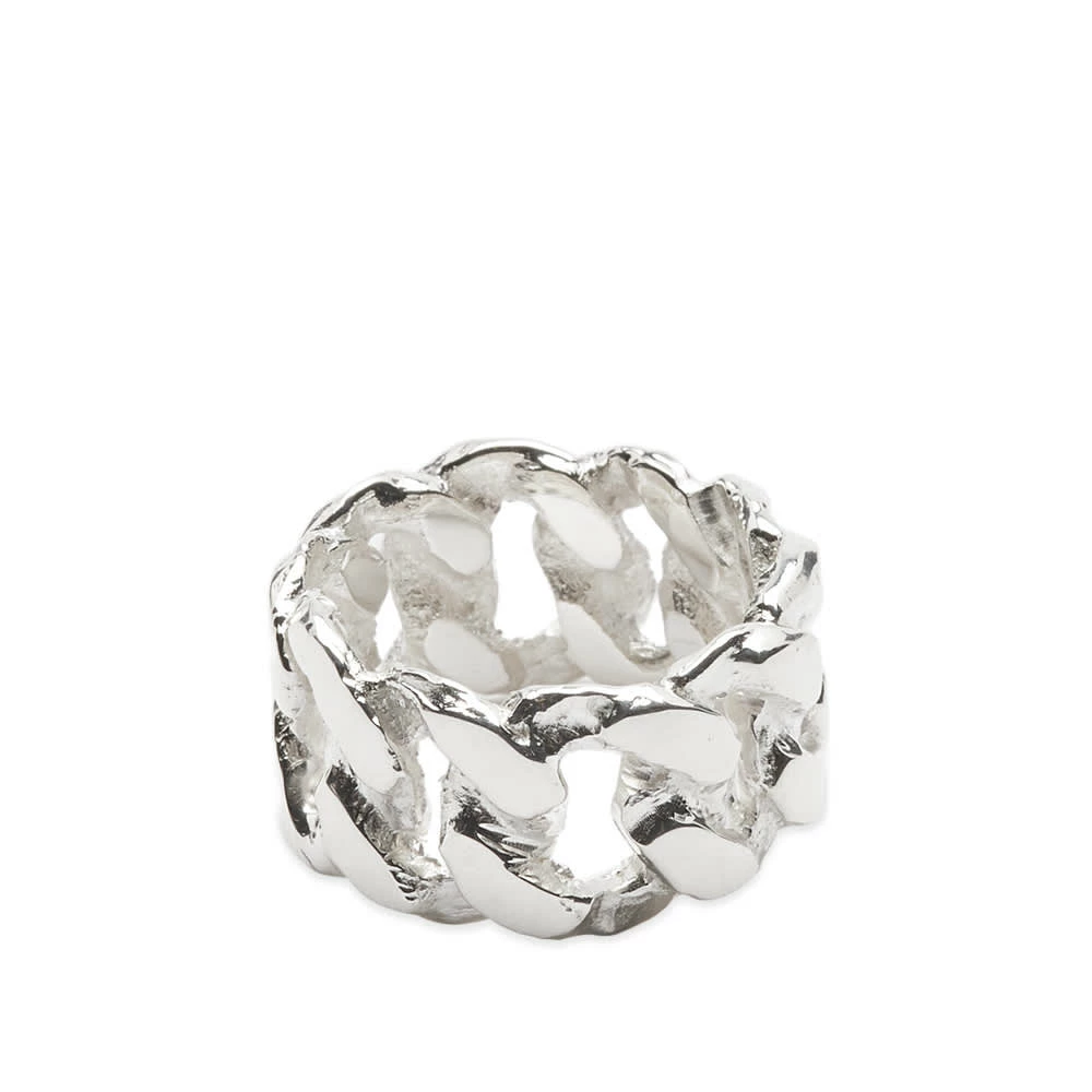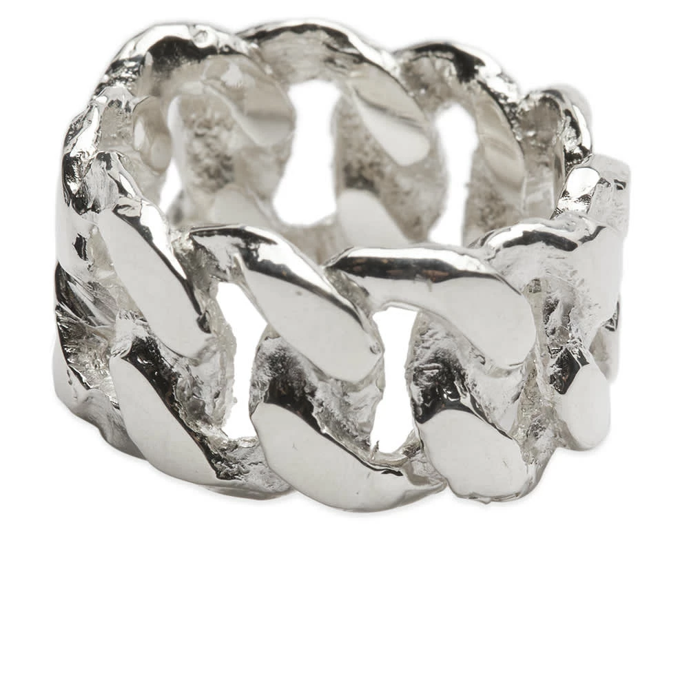 Canadian brand Pearls Before Swine is renowned for its craftsmanship, powerful narrative and elemental nature. The XL link ring looks like it came straight from the earth. Made with a metal that often has an interesting texture, this ring is slightly hammered to catch the light.