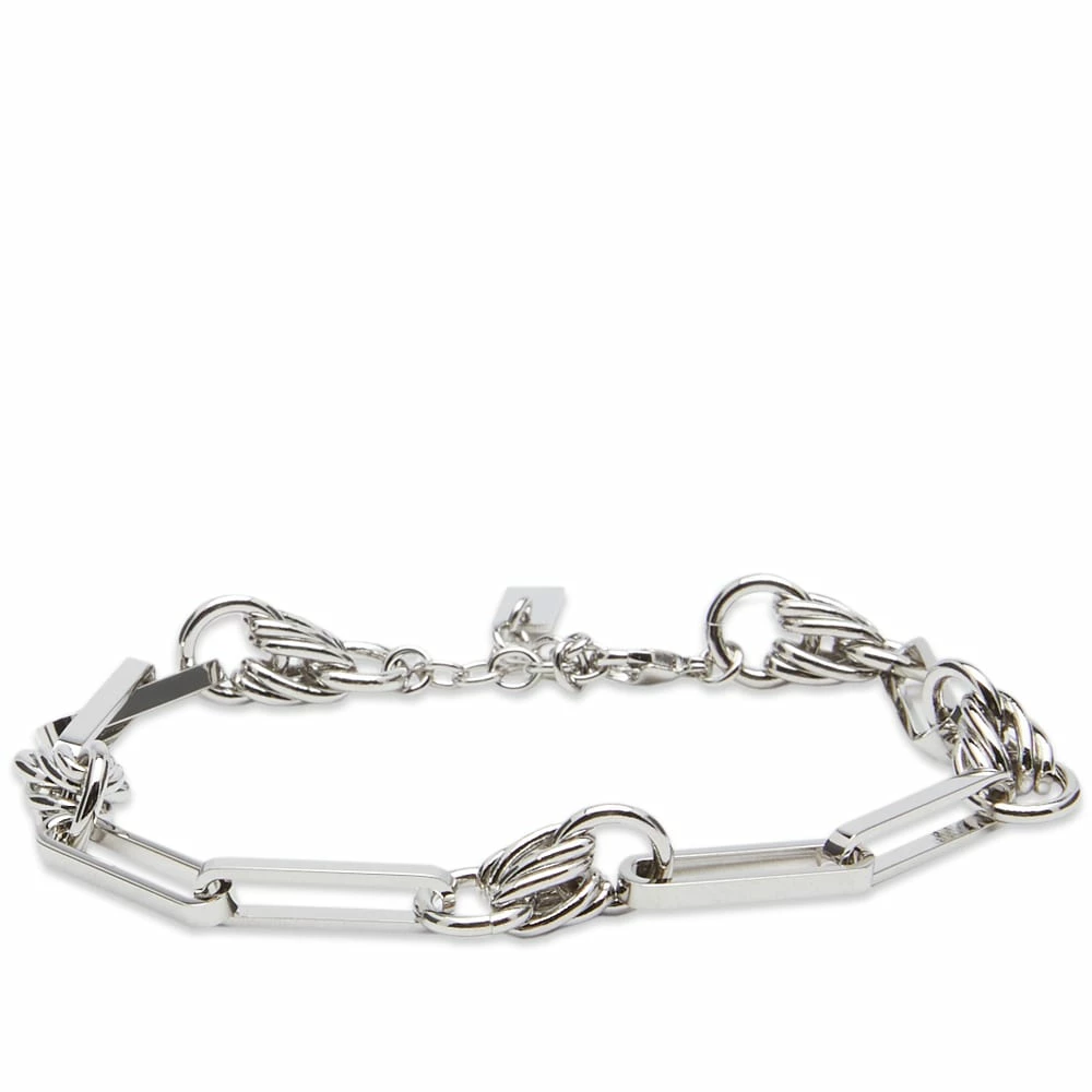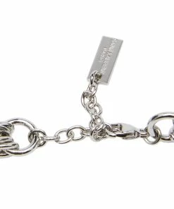 Saint Laurent adds a vintage yet rustic edge to your accessory lineup with the Alte chain bracelet. A vintage style chain with alternating sections of metallic cable and knit links to create a utilitarian inspired aesthetic with the brand’s logo engraved on the closure plaque.