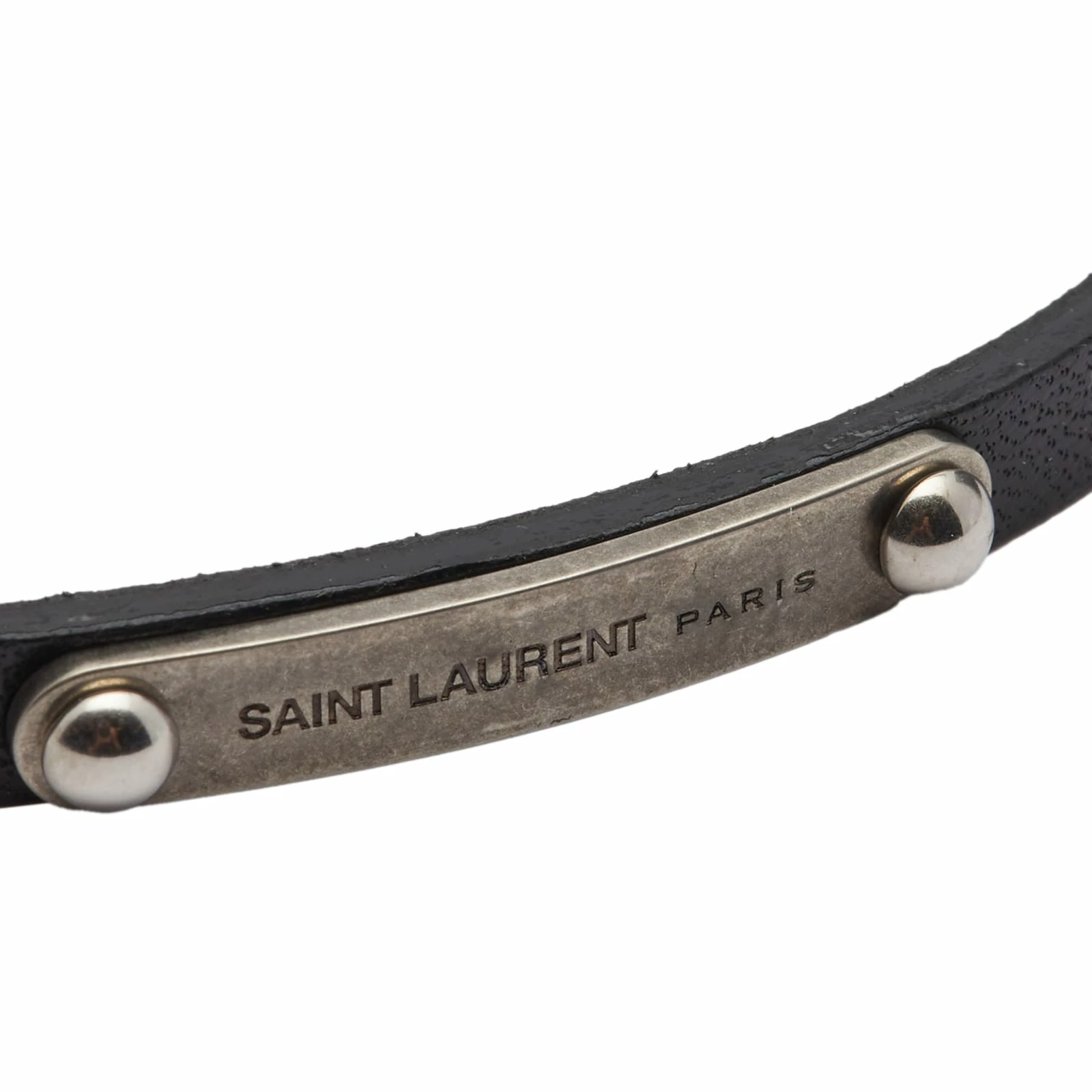 Saint Laurent, now under the creative control of Anthony Vaccarello, continues to build on the Laurent legacy with contemporary iterations of its signature style. Designed with a leather strap, this bracelet features an engraved Paris plaque in an antique finish.